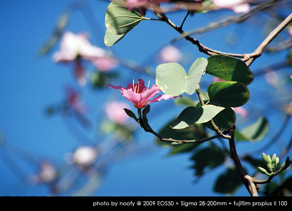 在上班的路上,有條巷子,這個時候開了不少羊蹄甲,長得滿像櫻花、桃花之類的,再加上天氣不錯,錯過不拍真的很可惜啊~